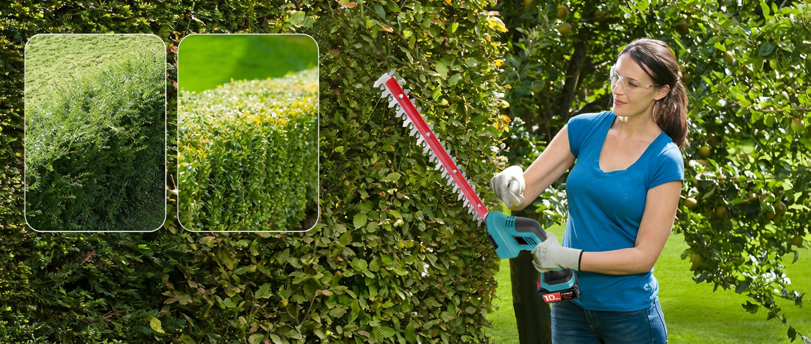 2‑in‑1 Cordless Hedge Trimmer with 2 Batteries – Grass and Shrub Trimmer – Lightweight and Compact Hedge Shears for Garden and Lawn