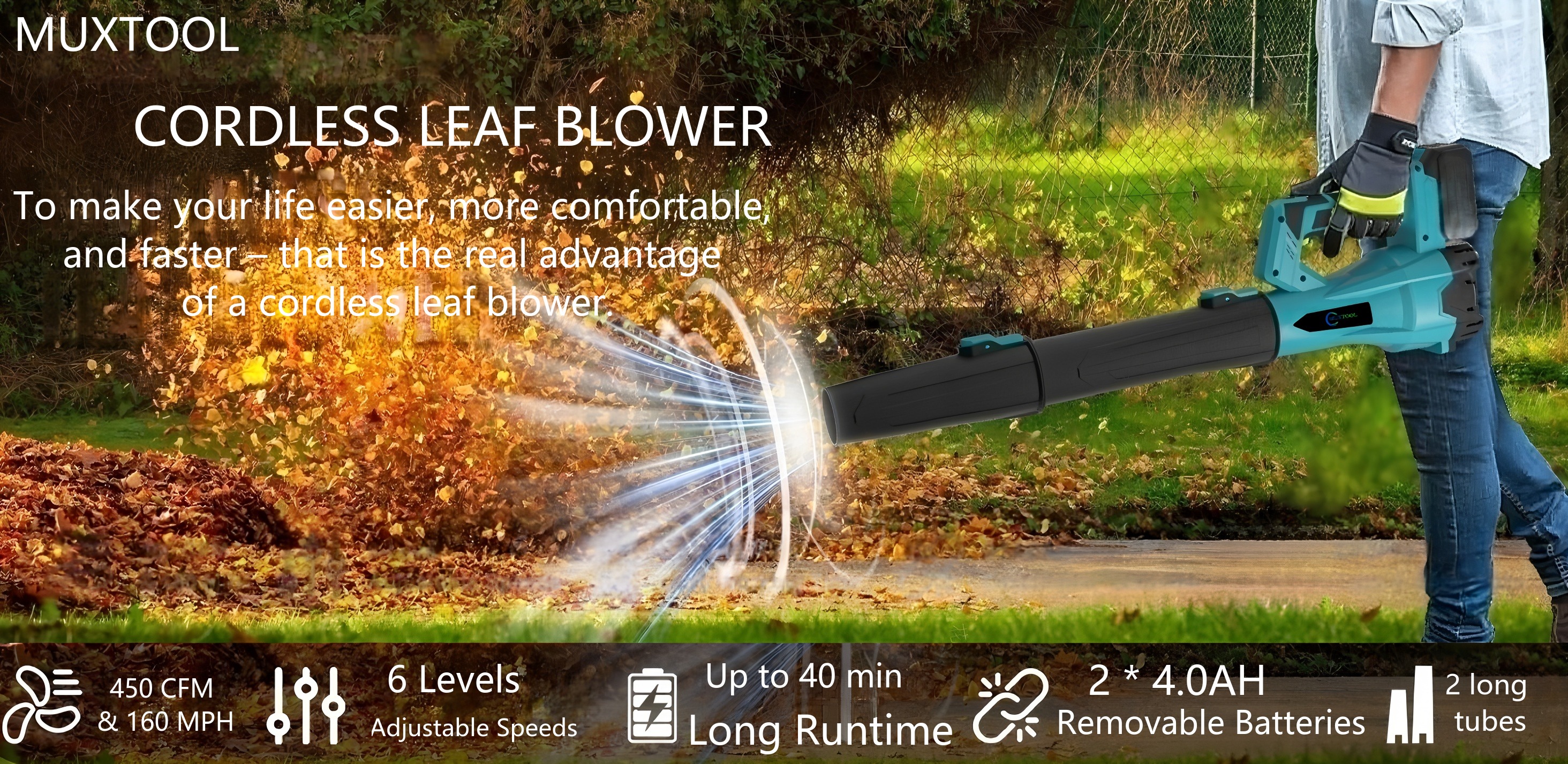 21V cordless 6-speed leaf blower: For quick and effective garden & patio cleaning – includes 2 batteries