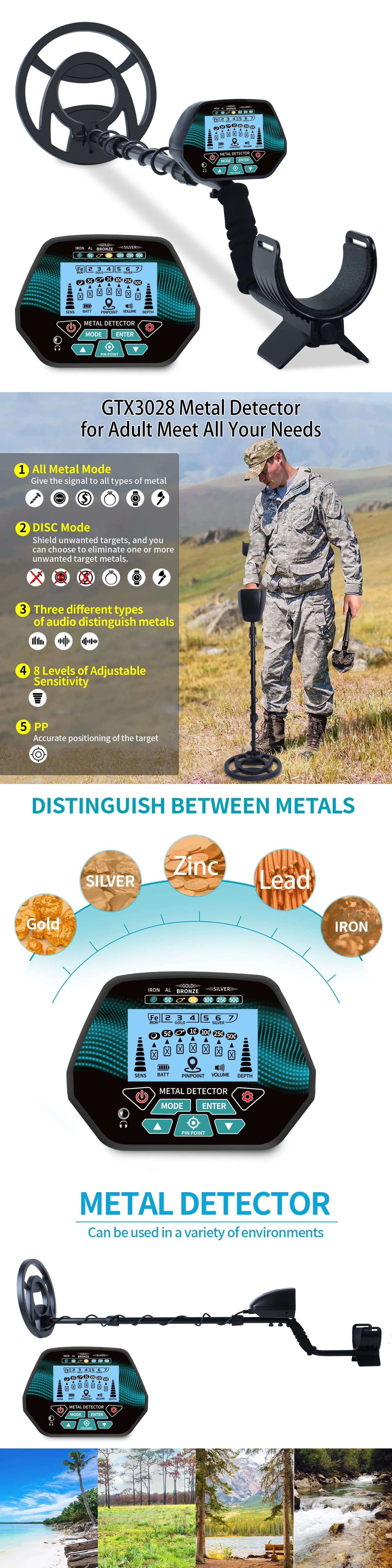 The GT3028 underground metal detector can perform multifunctional detection on various types of terrain.