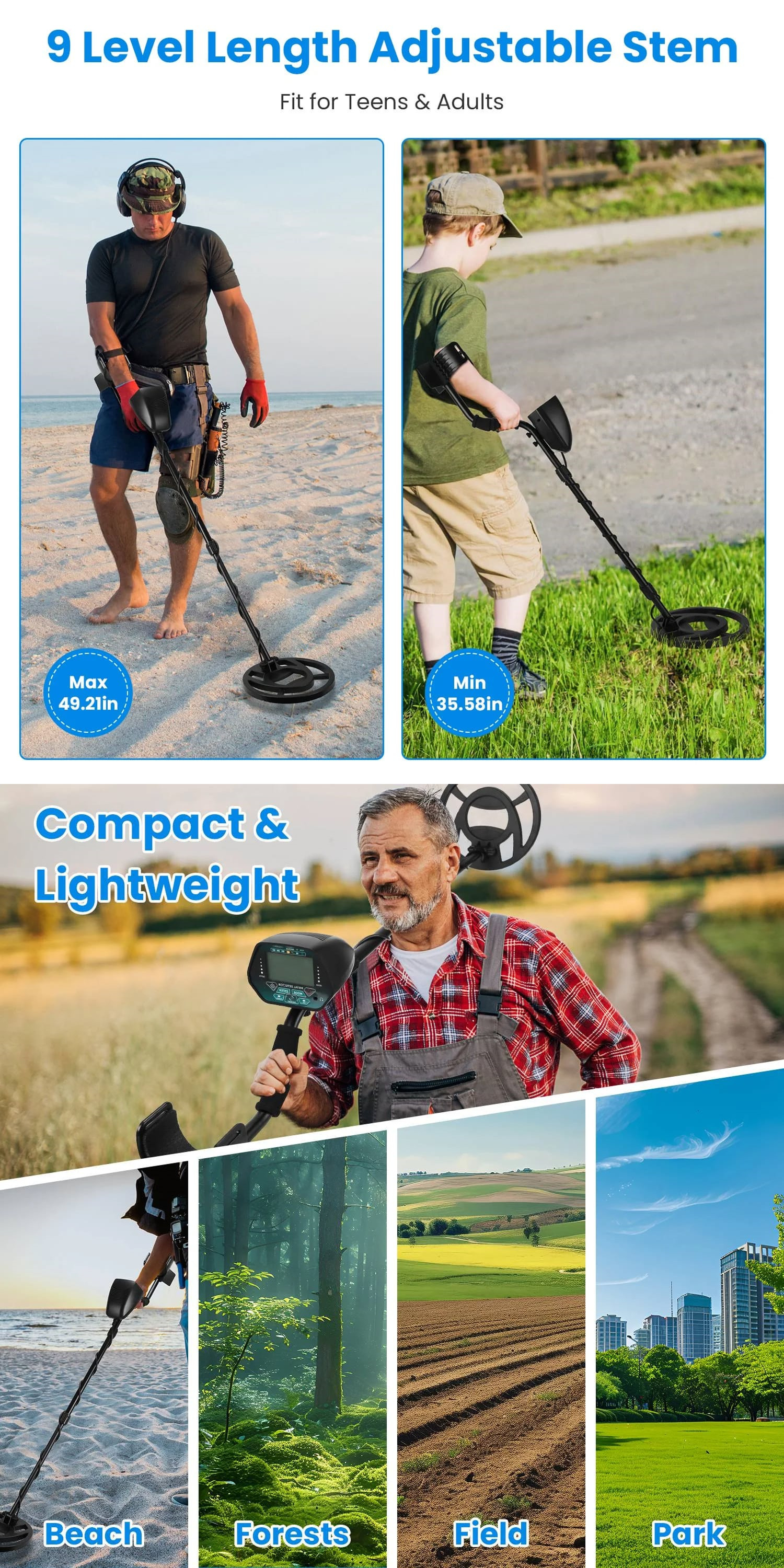 The fully waterproof search coil enables treasure hunting in rivers, streams, shallow ocean waters, and rain-soaked beaches, dramatically expanding your detection opportunities throughout all seasons and weather conditions.